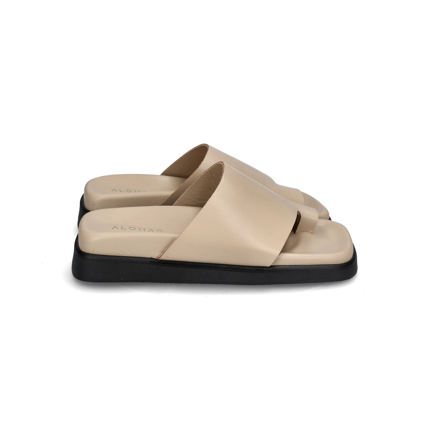 Klobige Flip Flops sind zurück! Der TOE RING FLOP von Alohas ist eine flache Zehenstegsandale mit Plateausohle. Dabei ist der TOE RING FLOP ganz von der neuen, gehobenen Flip-Flop-Ästhetik inspiriert. Der breite Riemen mit Zehenausschnitt ist in einem coolen Beige gehalten, das perfekt mit der tiefschwarzen, klobigen Sohle harmoniert.