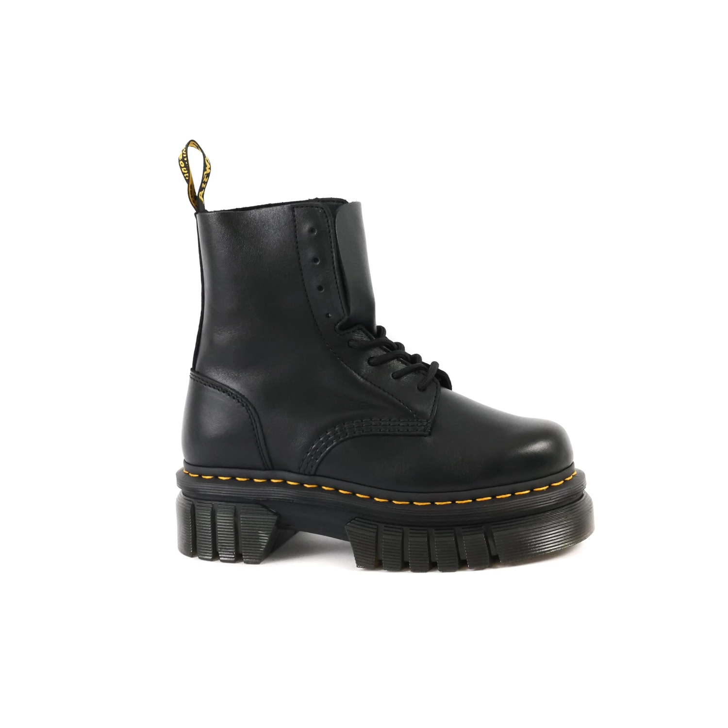 Der Audrick 8-EYE gehört in jeden Schuhschrank! Die neu gestaltete Plateausohle mit den typischen Dr. Martens Details lässt das Bein optisch strecken. Im Stilbruch zu einem Kleid mit Blütenprint oder zu einer Mom-Jeans und einem Oversized Blazer wird der Audrick Boot zu einem absoluten IT-Piece.