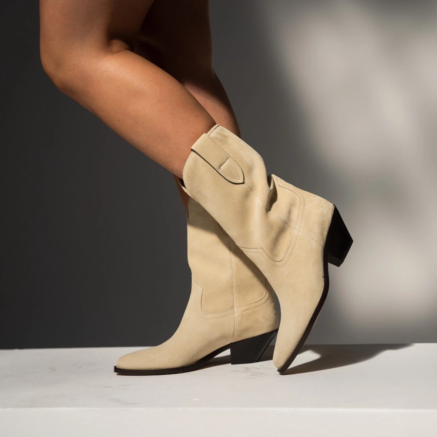 Inspiriert vom wilden Westen, bringt der DAHOPE Boot den coolen Western Look an deine Füße. Der Boot aus hochwertigem Veloursleder kommt mit einem typisch abgeschrägten 5cm hohen Absatz und einem mittelhohen, locker sitzenden Schaft, der den Look besonders lässig wirken lässt. Besonders zu einer lässigen Jeans oder einem kurzen Kleidchen lieben wir ihn.